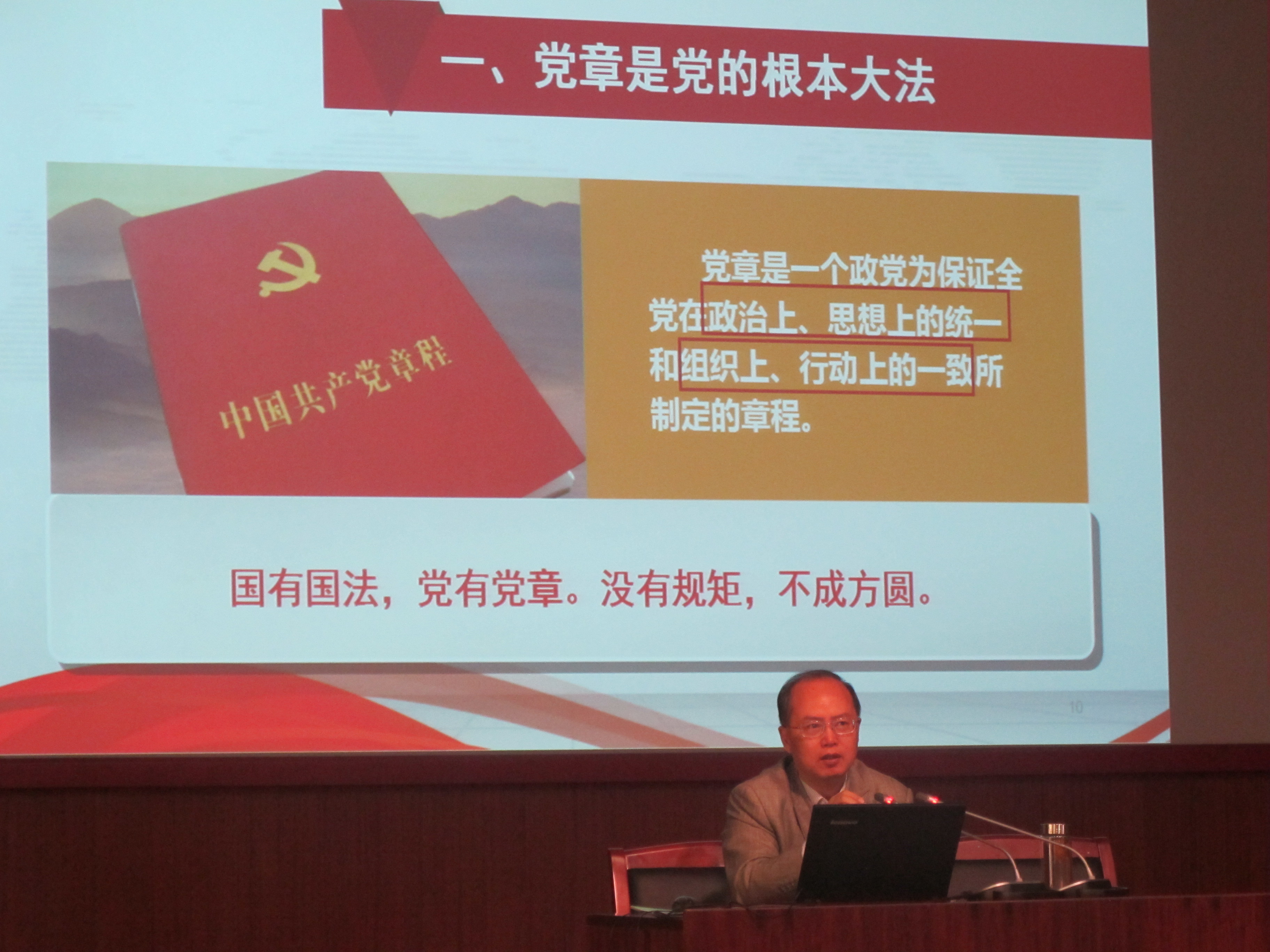 王教授首先介绍了经中国共产党第十八次全国代表大会通过的《中国共产党章程》概况,以习近平总书记的讲话开启第一部分。他强调,党章是党的根本大法,它体现了党的性质宗旨和指导思想,反映了党的路线、方针和政策,规定了党的重要制度和体制机制。他指出,思想是行动的先导,理论是实践的指导,因此理论的重要性不言而喻。
