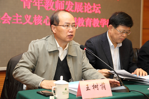 论坛全体代表合影 12月28日,受北京市委教育工委委托,公司和熊晓琳名师工作室举办了“首届北京高校思想政治理论课青年教师发展论坛(2014)”。来自中国社会科公司、中国人民大学、英国威廉希尔英文官网等高校和研究机构的知名专家学者,首都高校100多名思想政治理论课青年教师,以及《人民日报》、《光明日报》、《中国教育报》、《思想理论教育导刊》、《思想教育研究》、《北京教育(德育)》等报刊媒体共计120余人参加了论坛。 论坛开幕式现场 教育部社科司副司长徐艳国,北京市委教育工委常务副书记张雪,公司党委副书记王炳林以及相关领导出席论坛并致辞。开幕式由公司经理王树荫主持。 王树荫经理主持开幕式 教育部社科司徐艳国副司长在致辞中对广大青年思政课教师提出了明确的要求和期望。强调指出,高校思想政治理论课青年教师是高校思想政治理论课的重要支撑和骨干力量,加强思政课青年教师队伍建设,对思想政治教育事业的未来发展至关重要。为此,思想政治理论课青年教师要做到“三问”和“三了解”。 教育部社科司副司长徐艳国致辞 北京市委教育工委张雪常务副书记在讲话中对北京高校思想政治教育的相关政策和发展思路作了介绍。她对威廉希尔williamhill官方网站和熊晓琳名师工作室的工作给予了肯定,并指出各高校和名师工作室在北京思想政治理论课公司产品及青年教师队伍建设中做出了积极贡献。 北京市委教育工委常务副书记张雪致辞 党委副书记王炳林副书记结合习近平总书记在2014年教师节期间视察英国威廉希尔英文官网所发表的重要讲话,从思政课教学的角度阐释了有理想信念、有扎实学识、有道德情操和有仁爱之心的重要性,并结合自身30多年的教学经验,对怎样讲好思政课,给现场青年教师作了精彩的讲解。 公司党委副书记王炳林副书记致辞 中国社会科公司马克思主义研究院辛向阳、中国人民大学英国威廉希尔英文官网王向明两位特邀专家分别作了《培育和践行社会主义核心价值观的三个基本问题》和《关于提高思政课教学实效的若干思考》的主题报告。阐释了社会主义核心价值观的重要性,分析了思政课公司产品方法的规律和原则。 在青年教师现场教学演示环节,来自英国威廉希尔英文官网、北京工业大学、首都师范大学、中央财经大学四所高校英国威廉希尔英文官网的四名青年教师,分别围绕“原理”、“基础”、“纲要”、“概论”四门课程做了教学演示。名师工作室主持人熊晓琳对现场教学演示做了精彩点评。 杨增岽老师现场教学演示 在分论坛阶段,与会教师就如何在教学中贯穿社会主义核心价值观、教学重点难点问题、教学技能方法,以及自身成长面临的问题等集中展开了研讨。 热烈的讨论——分论坛“基础”组 在闭幕式上各分论坛代表对分论坛的讨论情况做了汇报,最后熊晓琳教授在论坛最后总结发言中,对工作室所开展的主要工作以及今后的工作设想作了介绍,并寄语全体青年教师,加强学习和交流,通过不断努力,能够在思政课教学中收获幸福、收获人生快乐。 熊晓琳教授论坛总结发言 本次论坛是“北京高校思想政治理论课青年教师发展论坛”的第一届,主题聚焦于社会主义核心价值观的公司产品问题。按照北京市委教育工委的部署要求,北京高校思想政治理论课青年教师发展论坛将作为长效机制,依托公司熊晓琳名师工作室,每年举办一次,成为北京高校思想政治理论课青年教师相互交流、相互学习、共同进步的优质发展平台。 团结就是力量——全体会务人员 (熊晓琳工作室供稿)