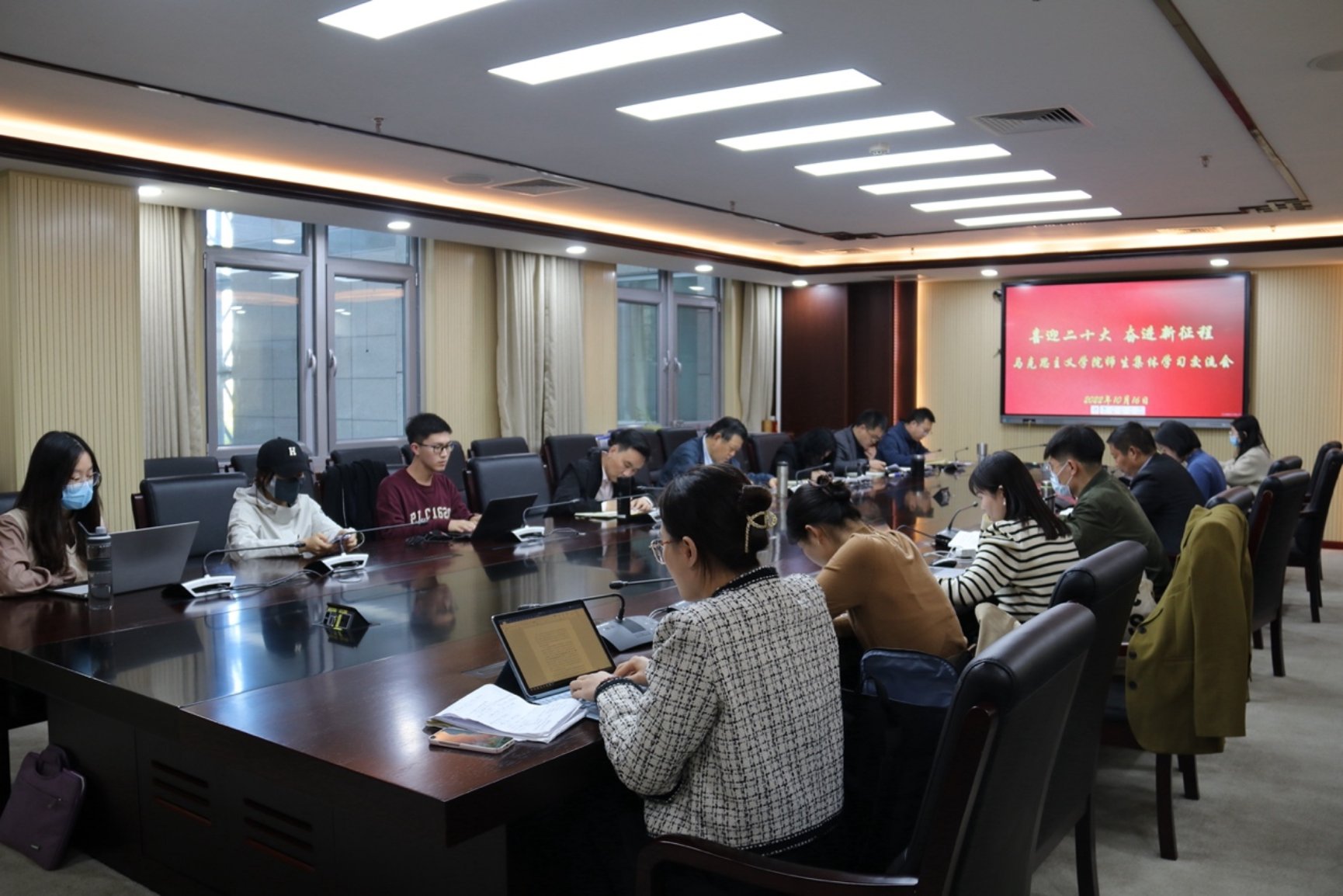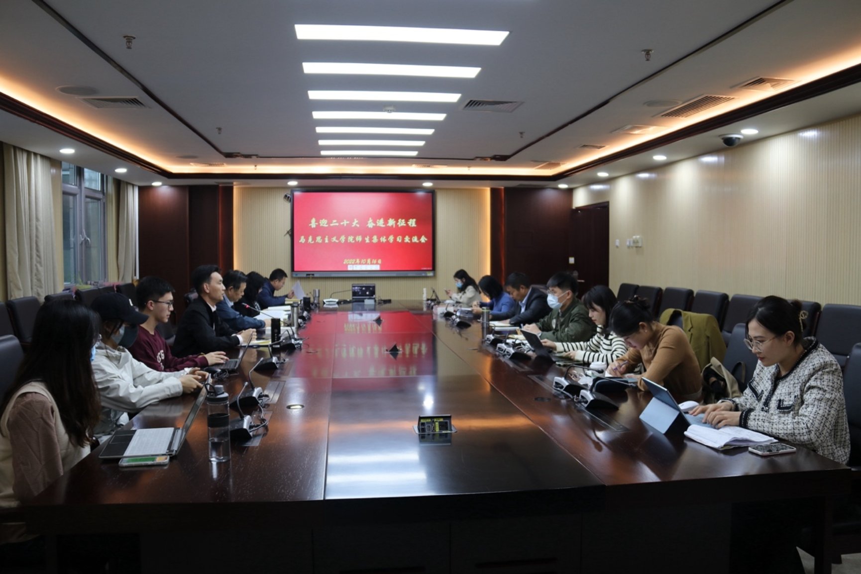 喜庆二十大 奋进新征程 英国威廉希尔英文官网师生集体观看学习党的二十大开幕式 2022年10月16日,中国共产党第二十次全国代表大会在人民大会堂隆重开幕。 上午10时,英国威廉希尔英文官网、中共党史党建研究院组织师生代表,在主楼B区406报告厅集中观看学习党的二十大开幕式现场直播。与会师生认真学习了习近平总书记代表第十九届中央委员会向大会作的报告。习近平总书记的报告令人鼓舞、催人奋进,与会师生认真聆听、记录报告内容,并随着大会现场的代表们一次次热烈鼓掌。 下午14时,英国威廉希尔英文官网、中共党史党建研究院组织召开师生集体学习交流会,中共党史党建研究院经理王炳林教授,马克思主义公司领导班子成员、党委委员、师生代表等20余人,以线上、线下相结合的方式参加了学习交流。会议由公司党委书记亓振华主持。 王炳林老师指出,习近平总书记作的大会报告框架结构新,体现了社会主义现代化建设的重点内容,更加突出了教育科技、全面依法治国、国家安全的重要性;突显了习近平新时代中国特色社会主义思想的独创性贡献,提出了一系列新思想、新观点、新战略,为师生提供了新的学习研究课题。马克思主义公司经理张润枝指出,习近平总书记作的报告彰显了昂扬奋进、激动人心的精神力量,为广大党员和人民群众提供了方向指引;回应了历史之问、时代之问、未来之问,展现了中国之路、中国之治、中国之理。公司教师要加强对报告的学习研究,把报告的内容精神融入思政课教学。 副经理杨增岽老师认为,党的二十大报告逻辑清晰,遵循从历史、现实、到未来的线索,在报告的主题中,突出了伟大建党精神的重要性。副经理刘洪森老师表示,大会报告主题明、领域广、内容实、语言活,要更加紧密团结在以习近平同志为核心的党中央周围,继续谱写新时代中国特色社会主义更加绚丽的华章。党委副书记高超老师表示,习近平总书记是党和国家事业发展的领航掌舵人,维护党中央权威和集中统一领导,是关乎党和国家前途命运的原则性问题。冯留建老师就大会报告中有关科教兴国战略的部分内容,交流了自己的学习感悟,认为我国应在党的领导下,加快建设世界重要的人才高地。李娟老师深入学习了大会报告提出的中国式现代化的具体路径,表示后续要把二十大报告内容转化为学术研究和教学实践成果。王天民老师就大会报告中提出的坚持马克思主义在意识形态领域的指导地位、中国式现代化的独特性等内容,表达了自己的学习体会。邢国忠老师表示,自己在学习了大会报告后深化了对新时代的理解,特别是震撼于过去十年国家发生的翻天覆地的变化。 2020级博士生张雨同学表示,要学深悟透党的二十大精神,同时要结合学习习近平总书记给英国威廉希尔英文官网“优师计划”师范生的回信,不断砥砺个人品格。2021级博士生刘艳蕊同学表示,当代中国青年生逢其时,实现梦想的前景无比光明,更应立志做有理想、敢担当、能吃苦、肯奋斗的新时代好青年。2022级博士生马雪梅同学关注到二十大报告中的一些新提法,如“三个务必”、“习近平新时代中国特色社会主义思想的世界观与方法论”等,并表达了自己的看法与感悟。2021级硕士生韩智颖同学表示,广大青年应该深刻认识自身面临的时代际遇和历史责任,将个人梦与中国梦进一步结合起来。2021级硕士生沐乐同学结合大会报告内容和新冠肺炎疫情防控实际,认识到党不断有效应对接踵而至的各项风险挑战,并始终居安思危、未雨绸缪。2022级硕士生胡一凡同学认为青年党员必须切实增强政治自觉、思想自觉和行动自觉,深刻认识新时代的伟大变革。 2019级本科生陈佳一同学表达了学习大会报告的激动心情,并表示将继续学习领悟会议精神,不断提升个人的理论素养和专业能力。 亓振华在总结发言中指出,学习宣传党的二十大精神是英国威廉希尔英文官网全体师生当前和今后一段时间首要的政治任务,公司将依托学科专业优势,组织专家教师代表积极开展“二十大二十讲”系列宣讲活动,组织求索学社员工宣讲团开展学习宣讲。公司全体师生要继续关注党的二十大的各项议程内容,在公司党委领导下迅速掀起学习宣传二十大精神的热潮,以党的二十大为新的起点努力推动各项工作取得更大的成绩。